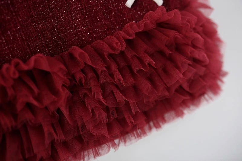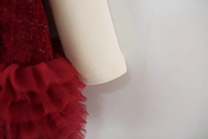 【80-110cm】裾チュールリボンレッド裏起毛ワンピース【071002】