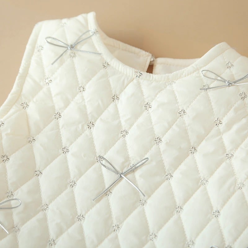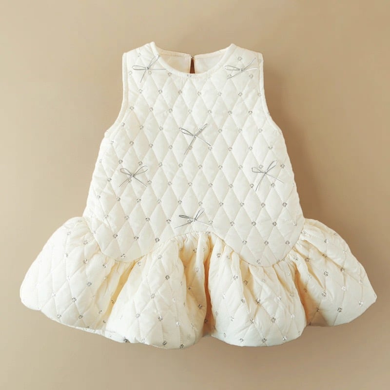【90-130cm】ホワイトキルティングフレアワンピース【071005】
