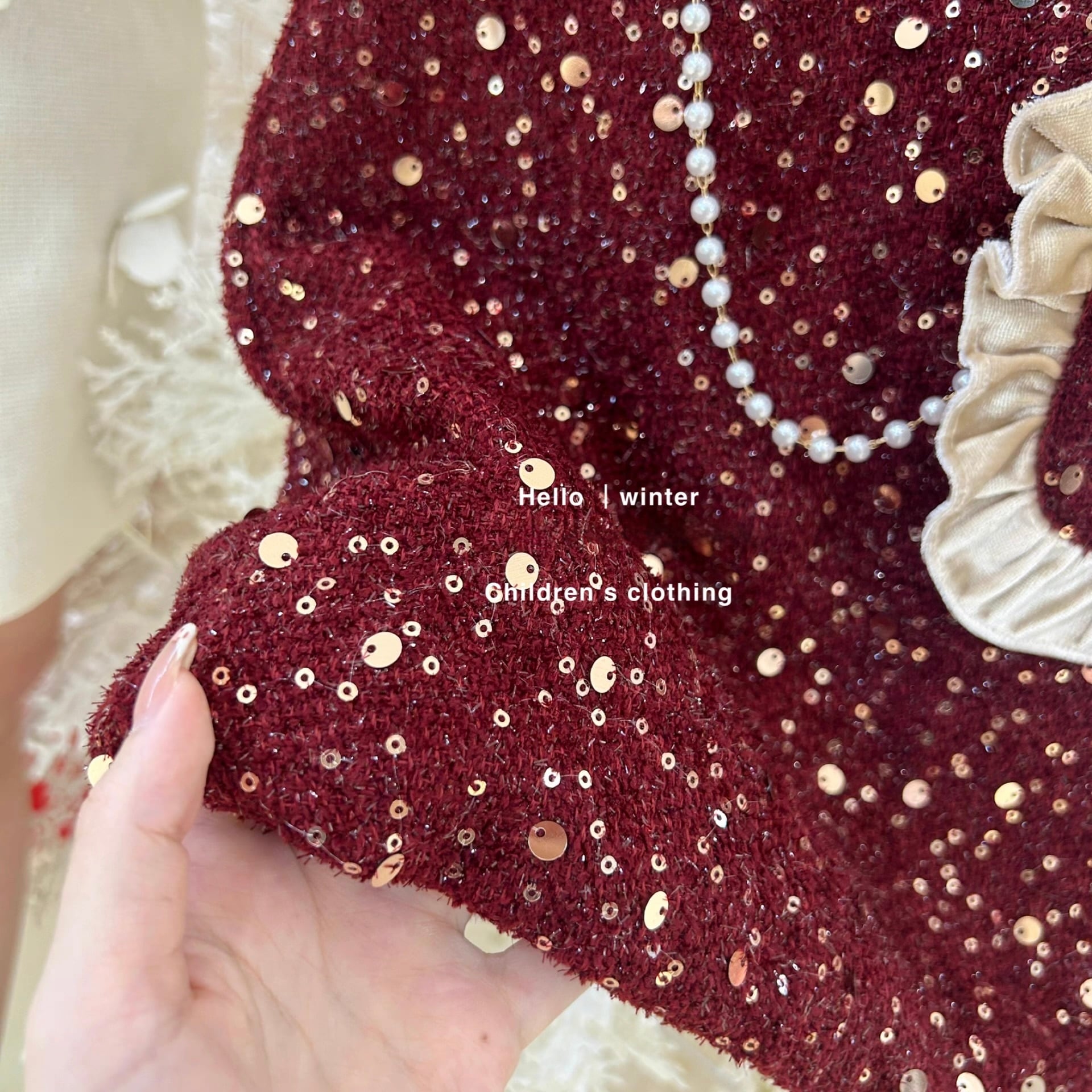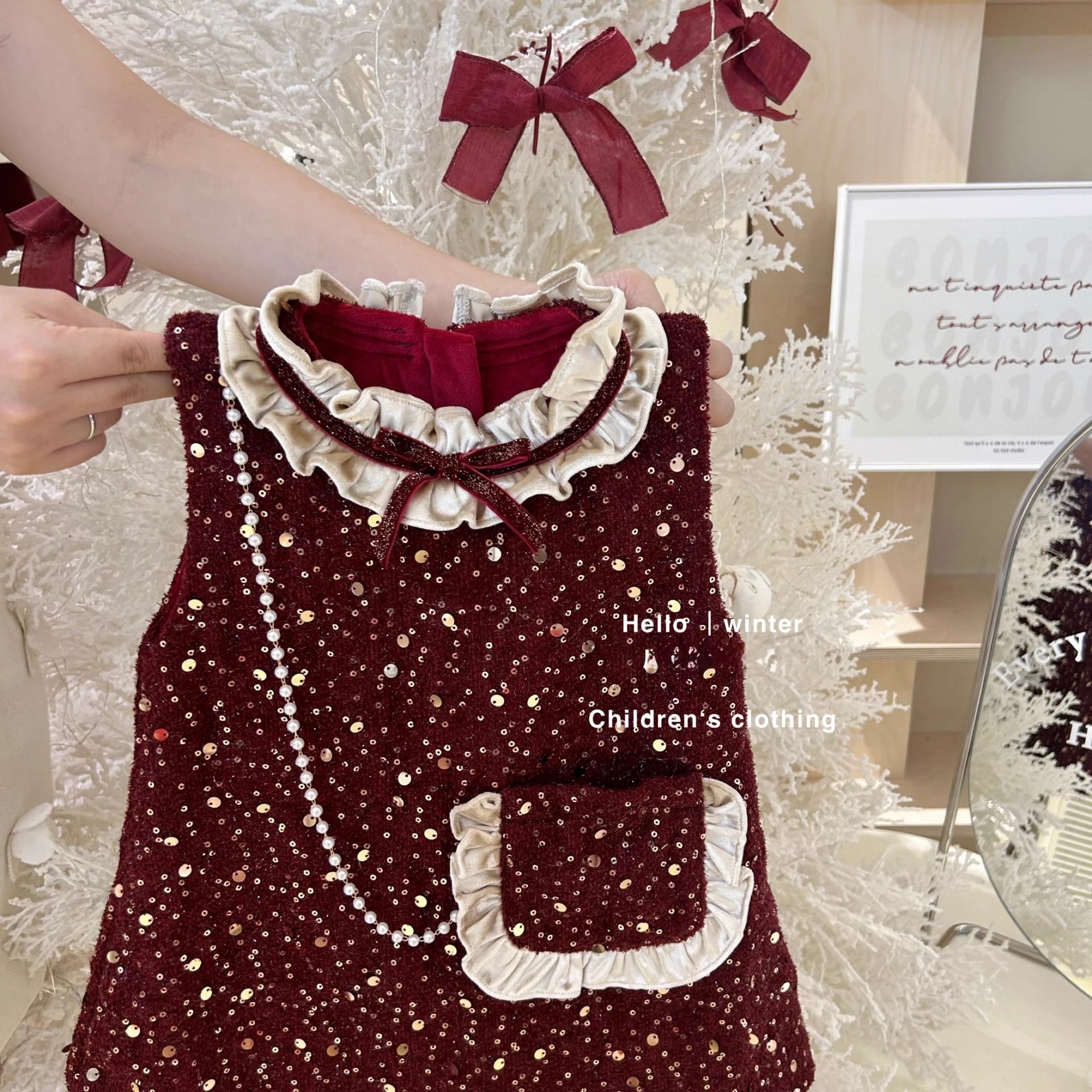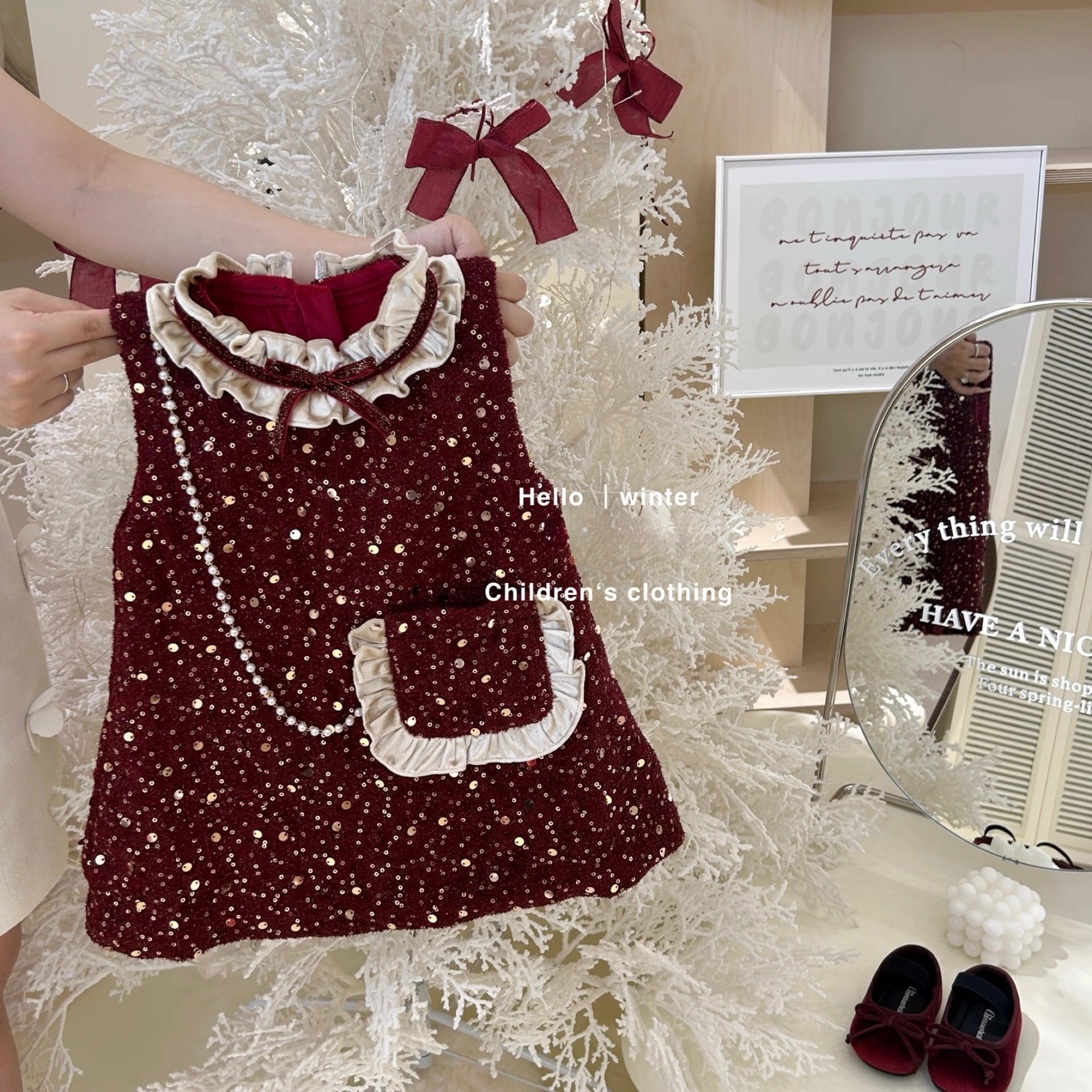【80-140cm】ネックリボンスパンコールワンピース【071014】