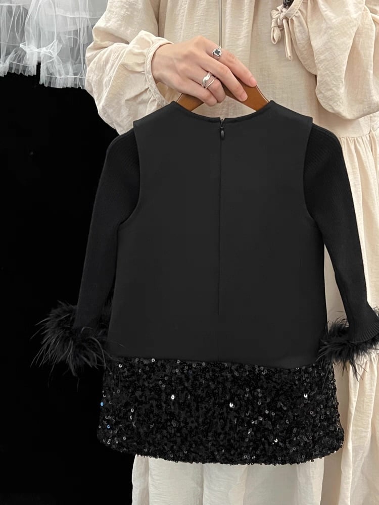 【90-140cm】裾スパンコールブラックワンピース【071015】
