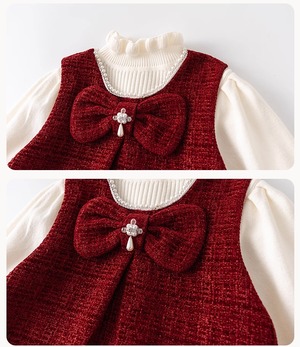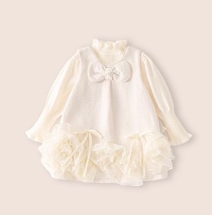 【90-140cm】全2色パールネック裾フリルワンピース&トップス【071016】