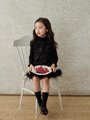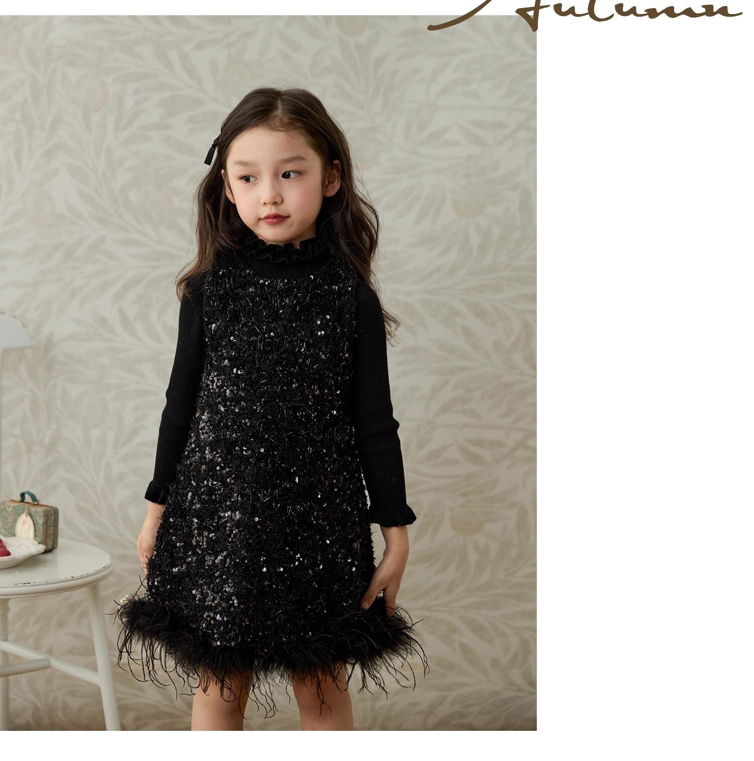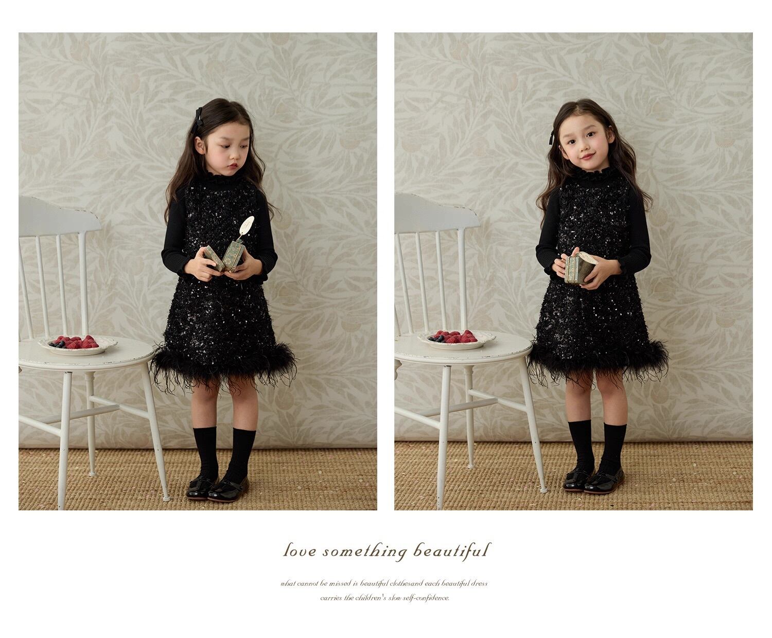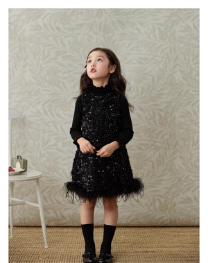 【90-140cm】裾フレアチュールワンピース&タートルネックトップス【071013】