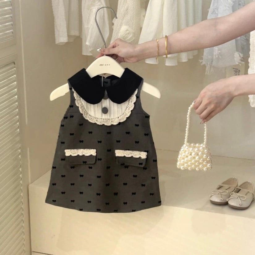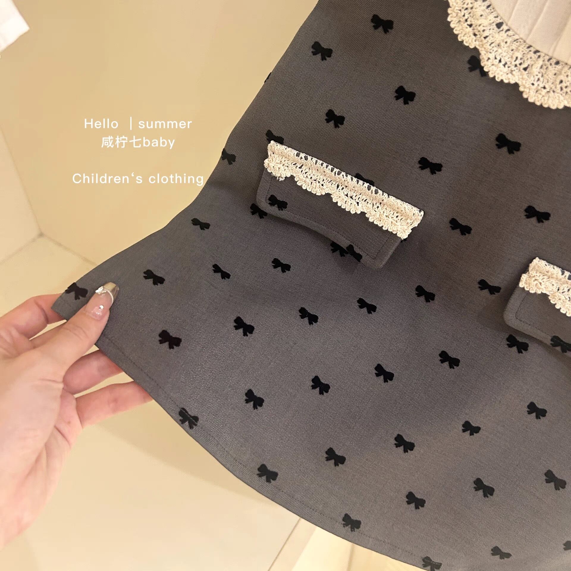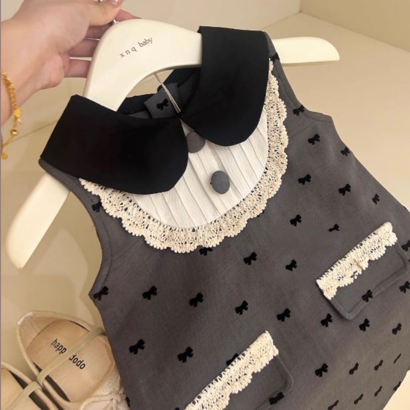 【新品】【120cm】【グレー】襟付きリボンモノトーンワンピース