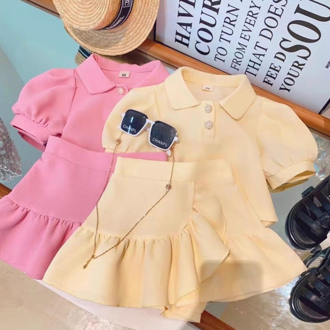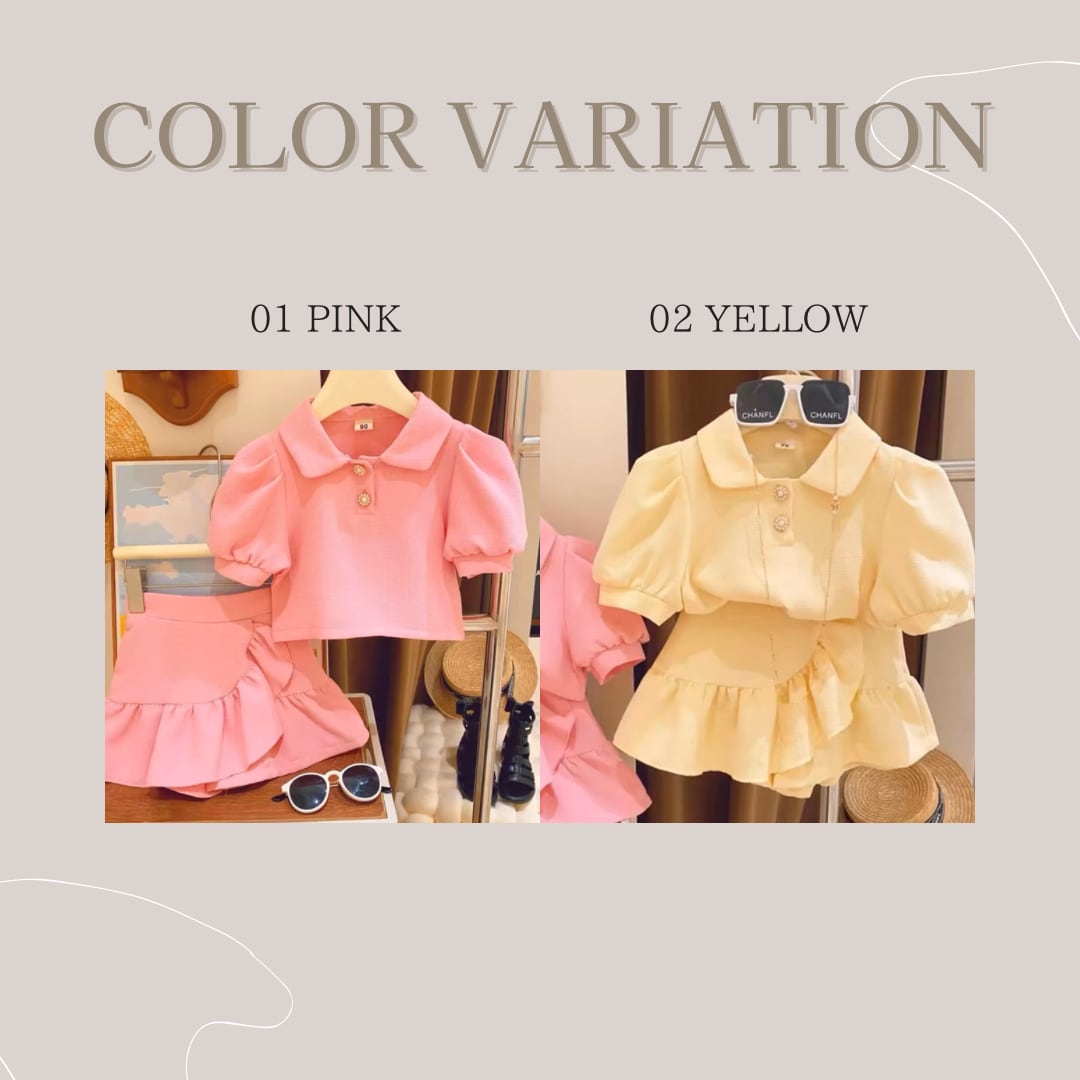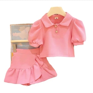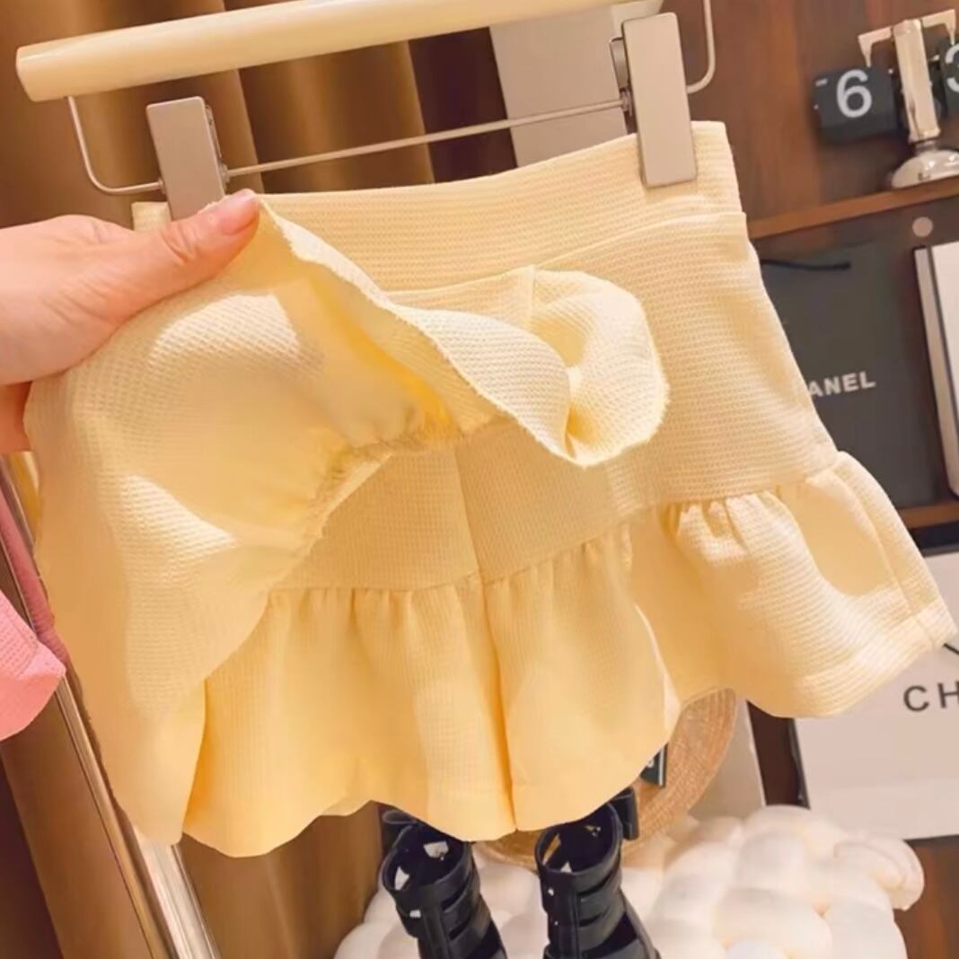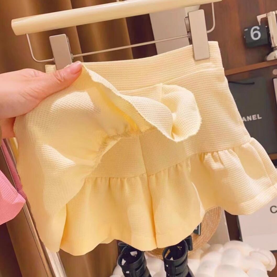 【新品】【100cm】【イエロー】パススリーブトップススカート風ショートパンツセットアップ