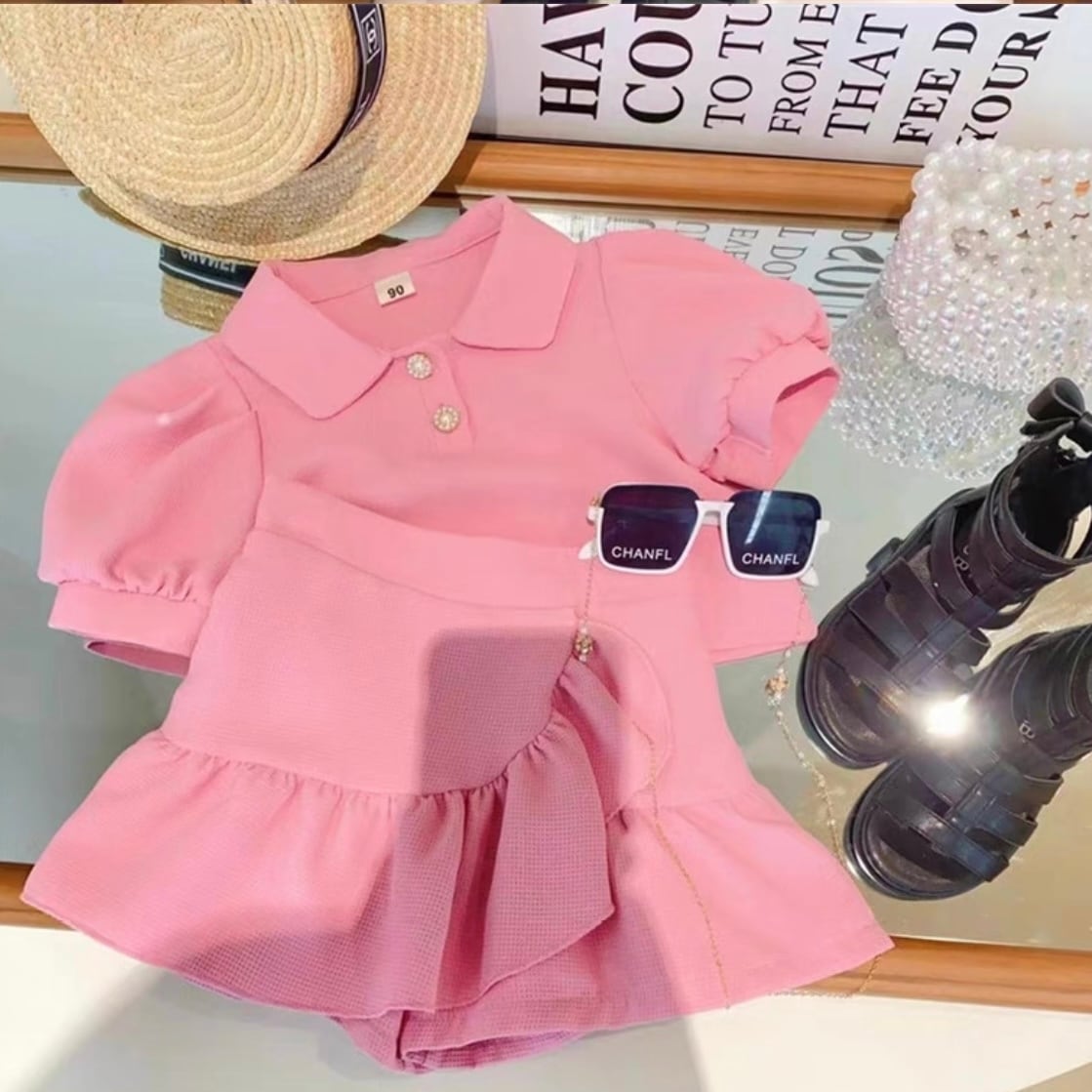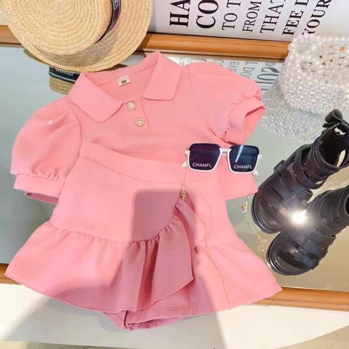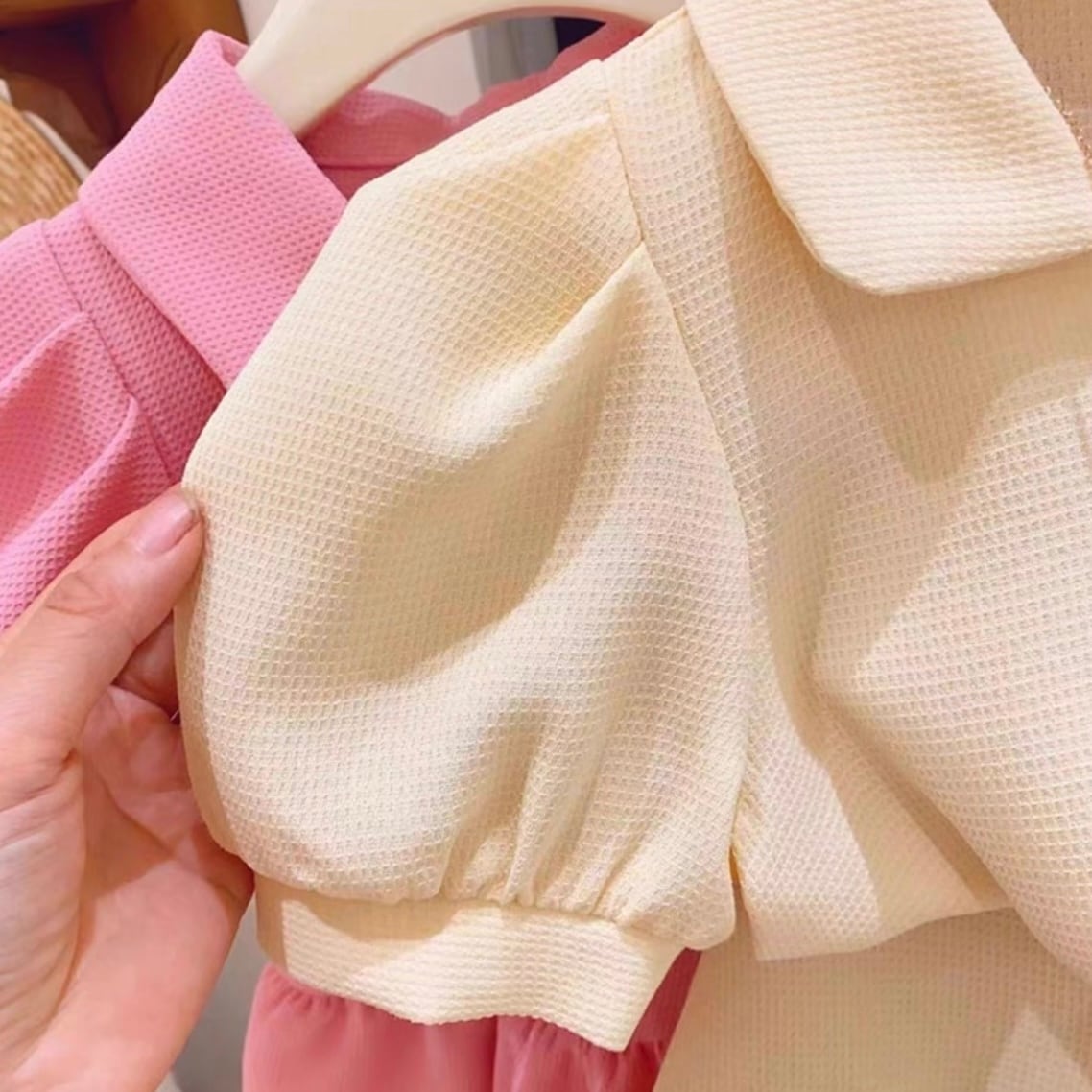 【新品】【100cm】【イエロー】パススリーブトップススカート風ショートパンツセットアップ