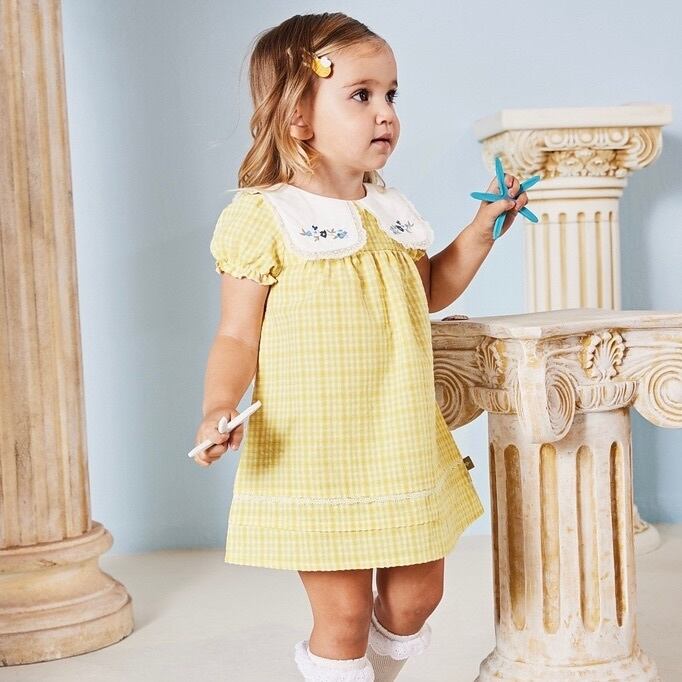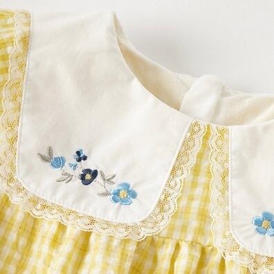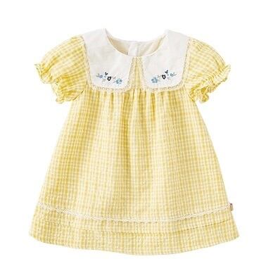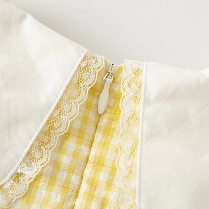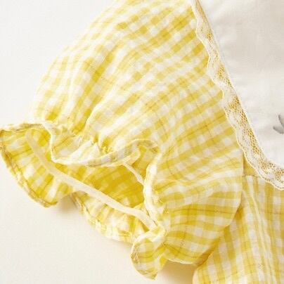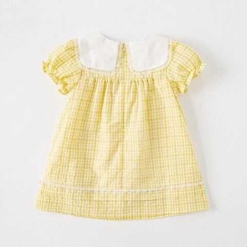 【90cm】【即納】 こちらの商品はUSED商品になります。 汚れ、シミ等のない綺麗な状態です。 ■素材:コットン47%、ポリエステル53% ■色:イエロー ■サイズ: 【90】着丈49cm バスト30cm 袖丈13cm 肩幅22cm