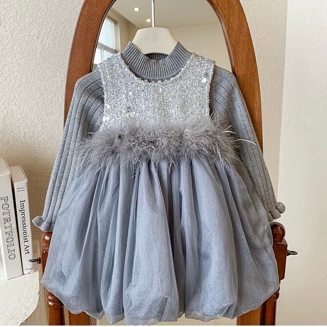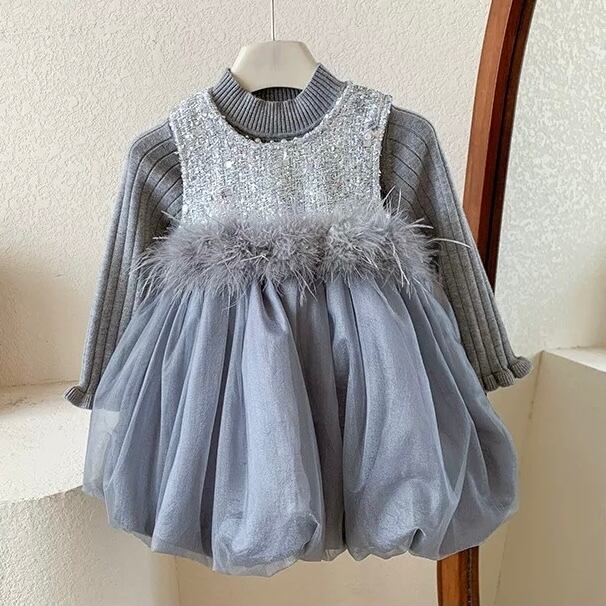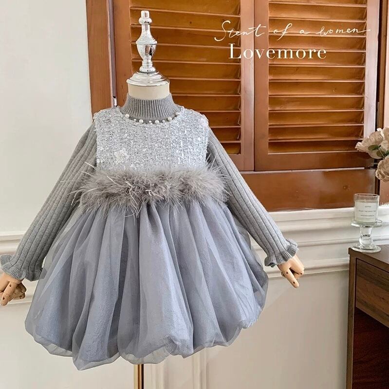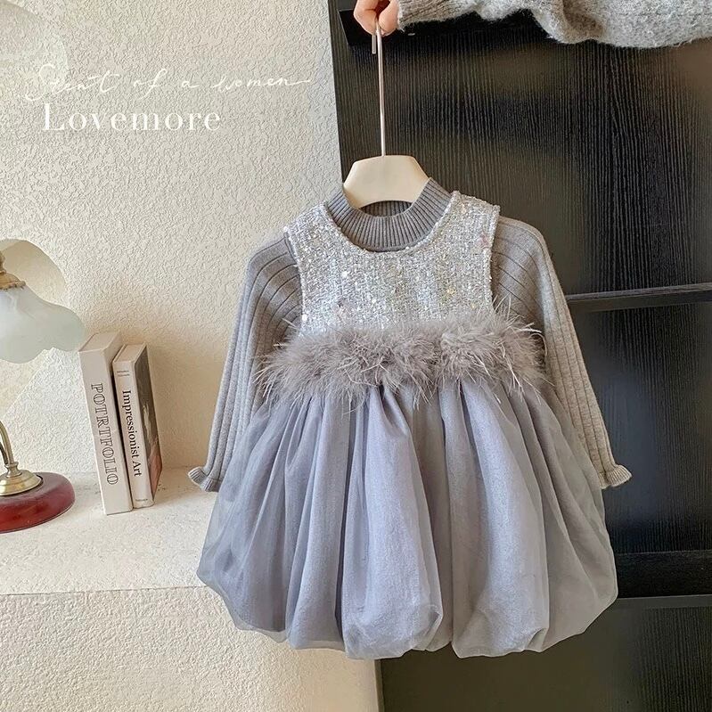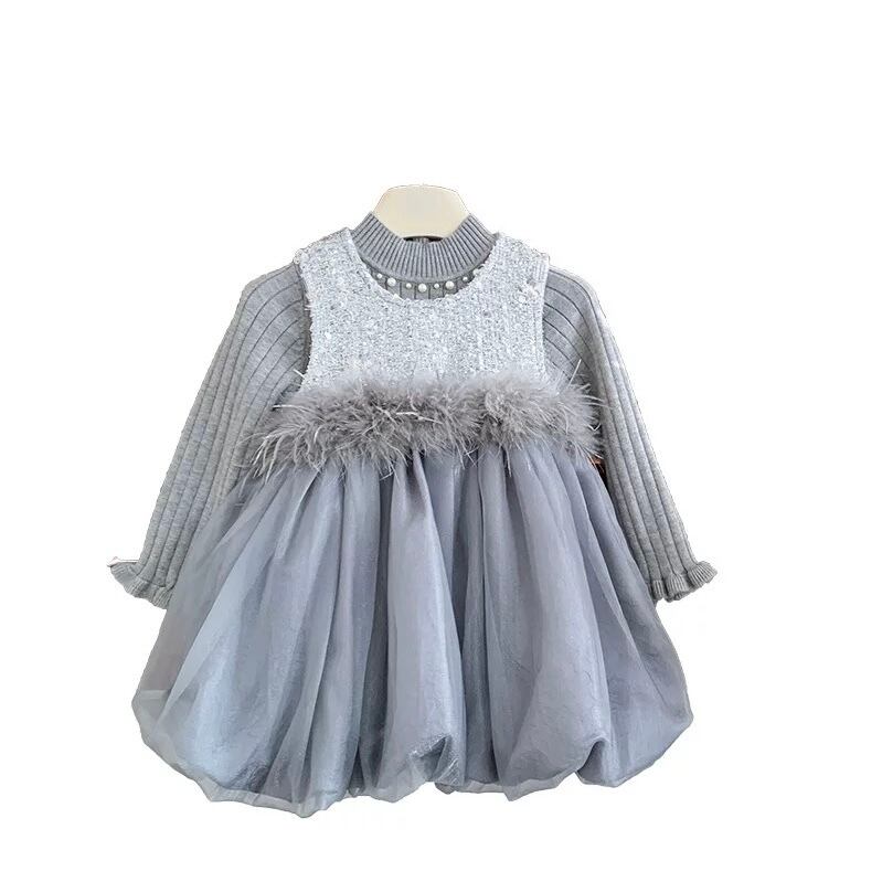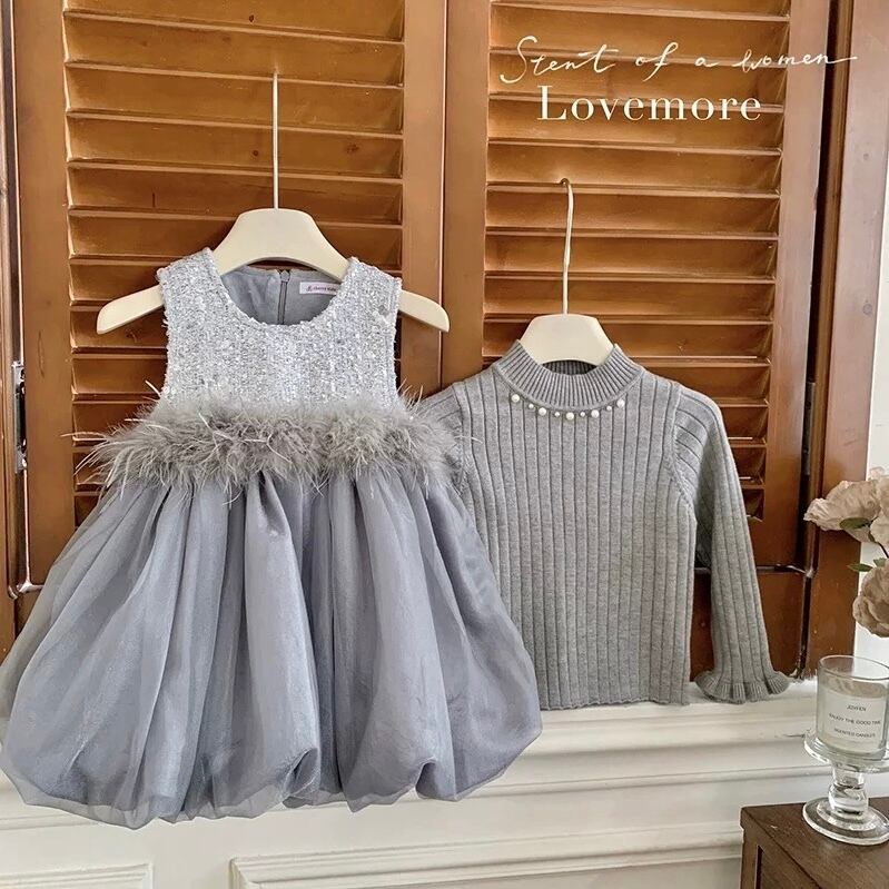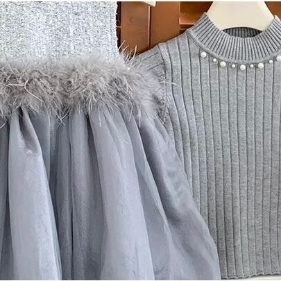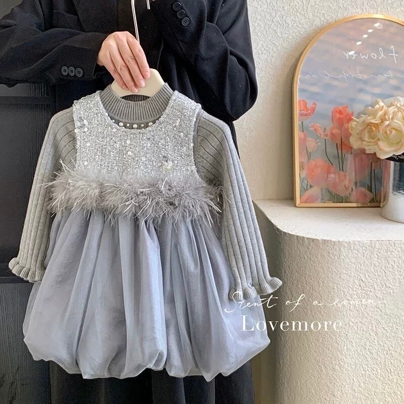 【新品】【110cm】ニットセットグレーバルーンワンピース