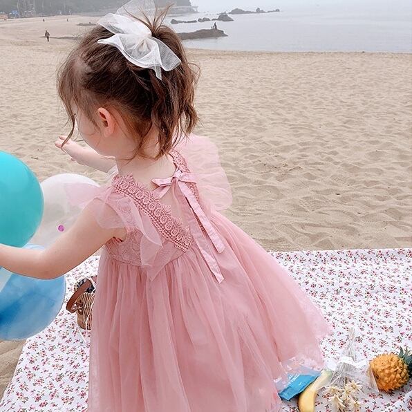 【80-130cm】全2色バックリボンチュールワンピース