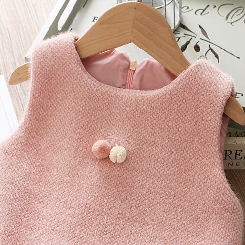 【90-130cm】全2色ポンポンモチーフジャケットワンピースセットアップ