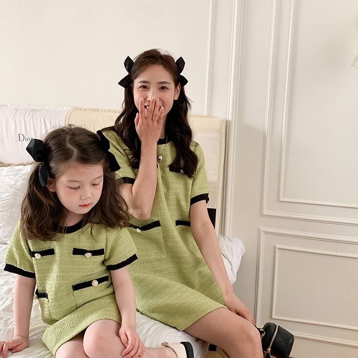 【90-150cm】パイピングバイカラーツイードワンピース