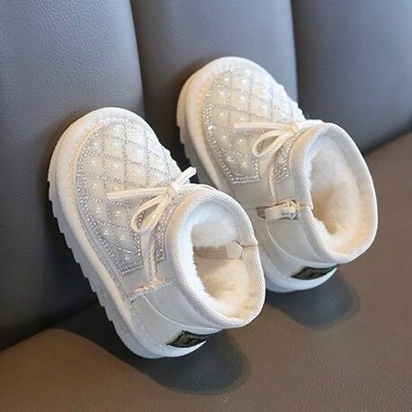 【12cm-18cm】 全3色ストーンパール裏起毛ショートブーツ