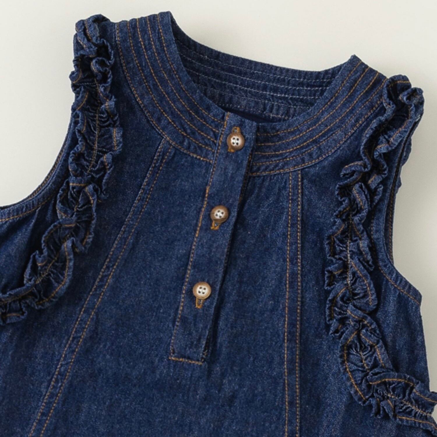 【80-140cm】フリルパイピングデニムワンピース【050604】