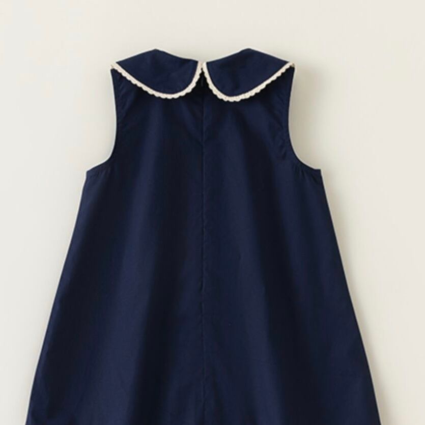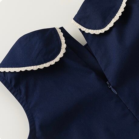【80-140cm】丸襟レースデザインワンピース【050603】