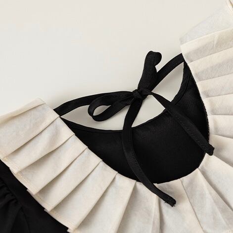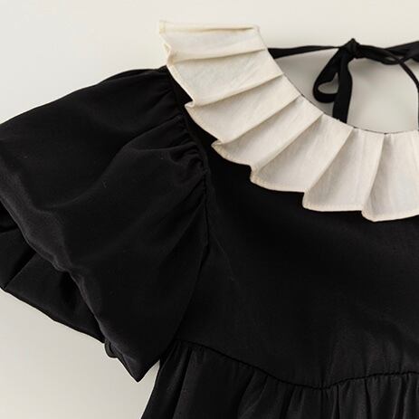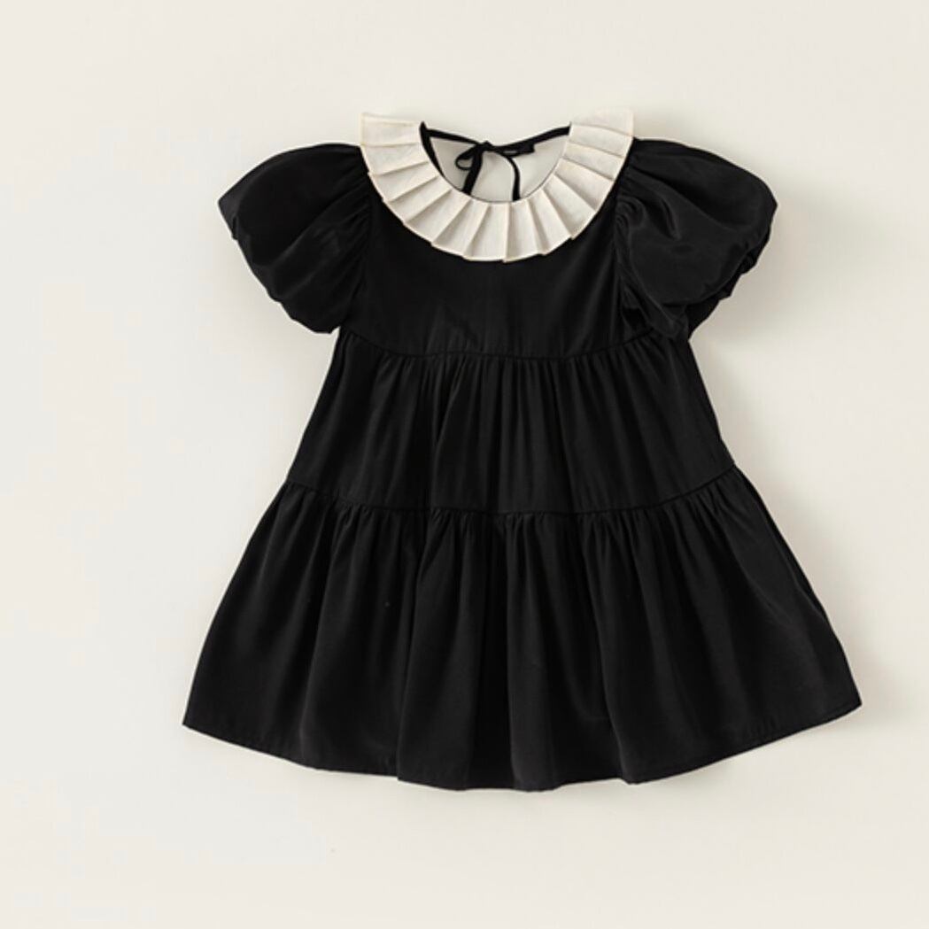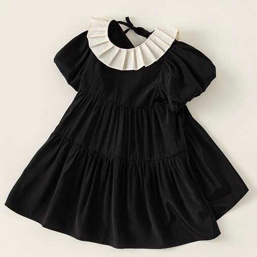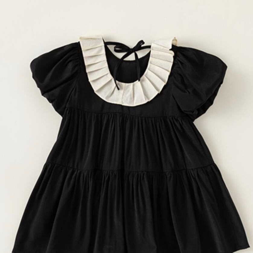 【80-140cm】プリーツ襟ティアード半袖ワンピース【050602】