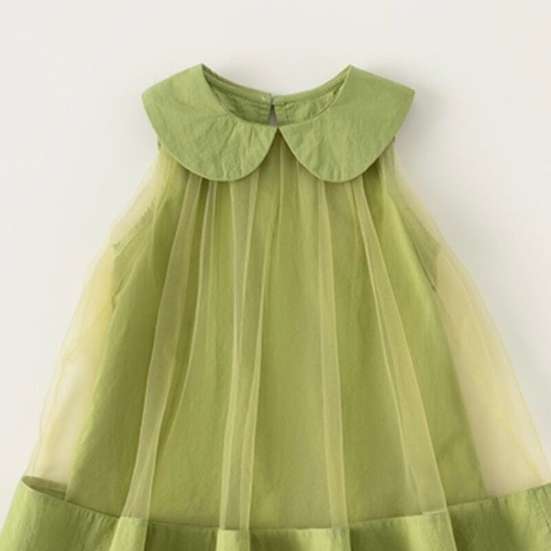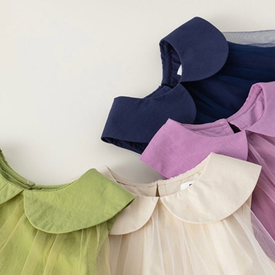 【80-140cm】全4色丸襟ノースリーブチュールワンピース【050610】