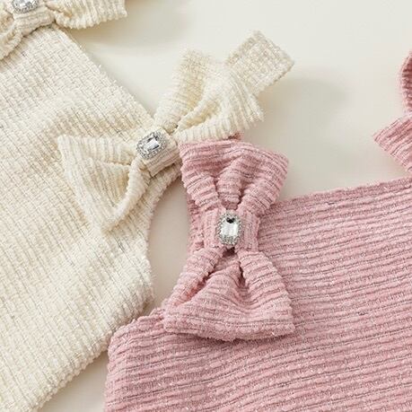 【80-140cm】全2色ジャガードリボンサロペット【050612】