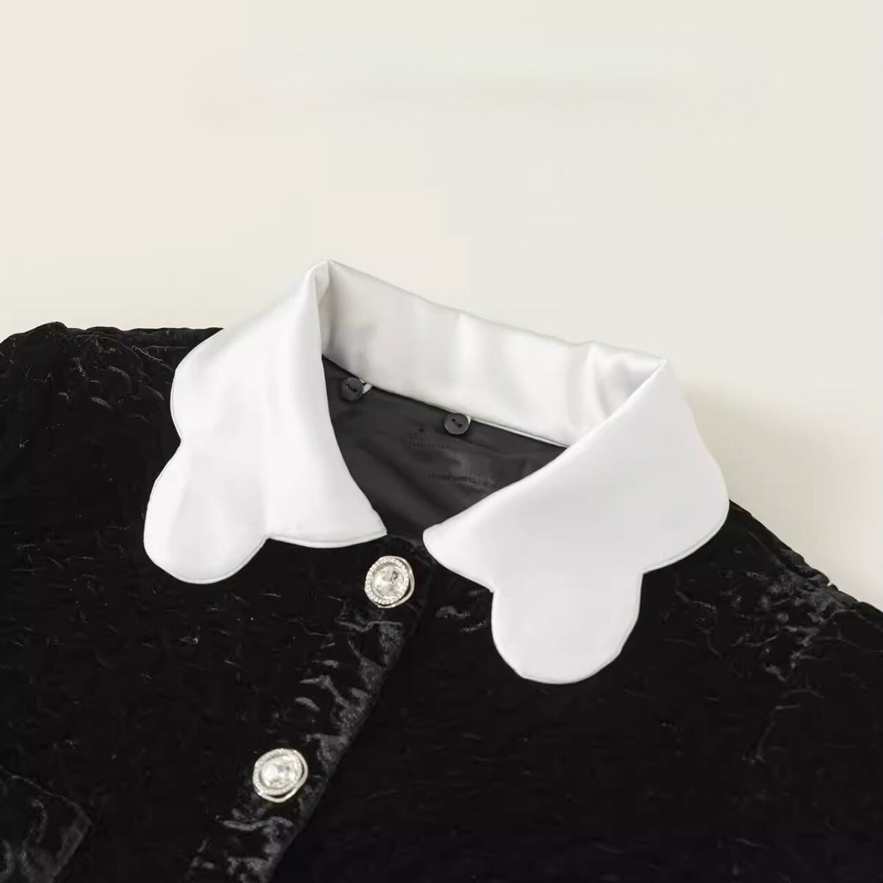 【90-140cm】襟付きカーディガンラインストーンスカートセットアップ【050905】