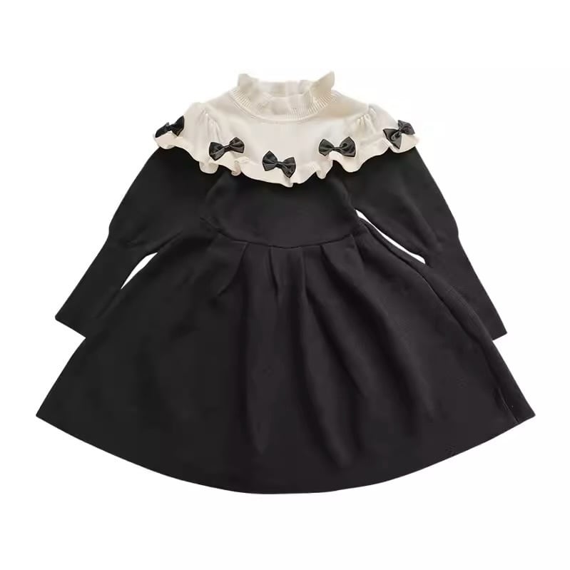 【90-150cm】全2色ビッグカラーリボン付きワンピース