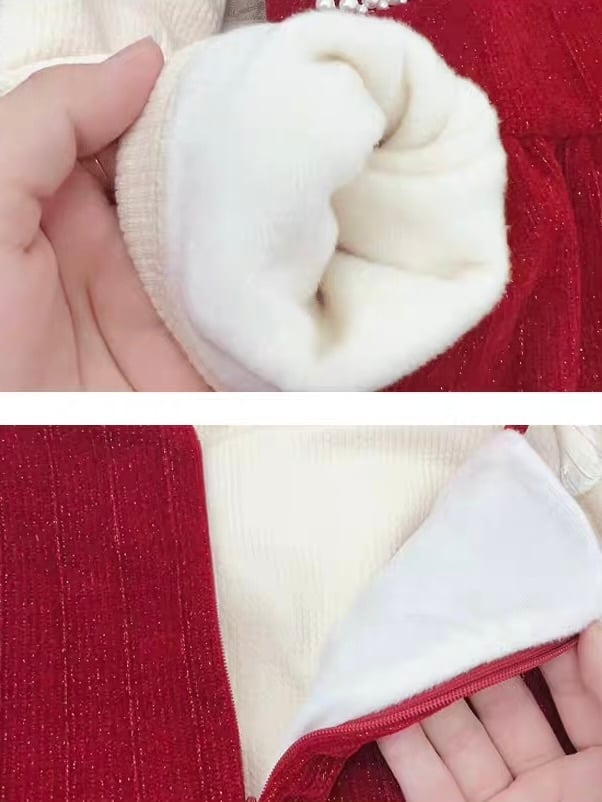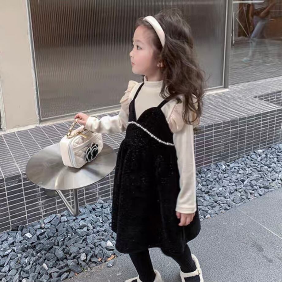 【90-140cm】全2色パールライン裏起毛ワンピース&トップス