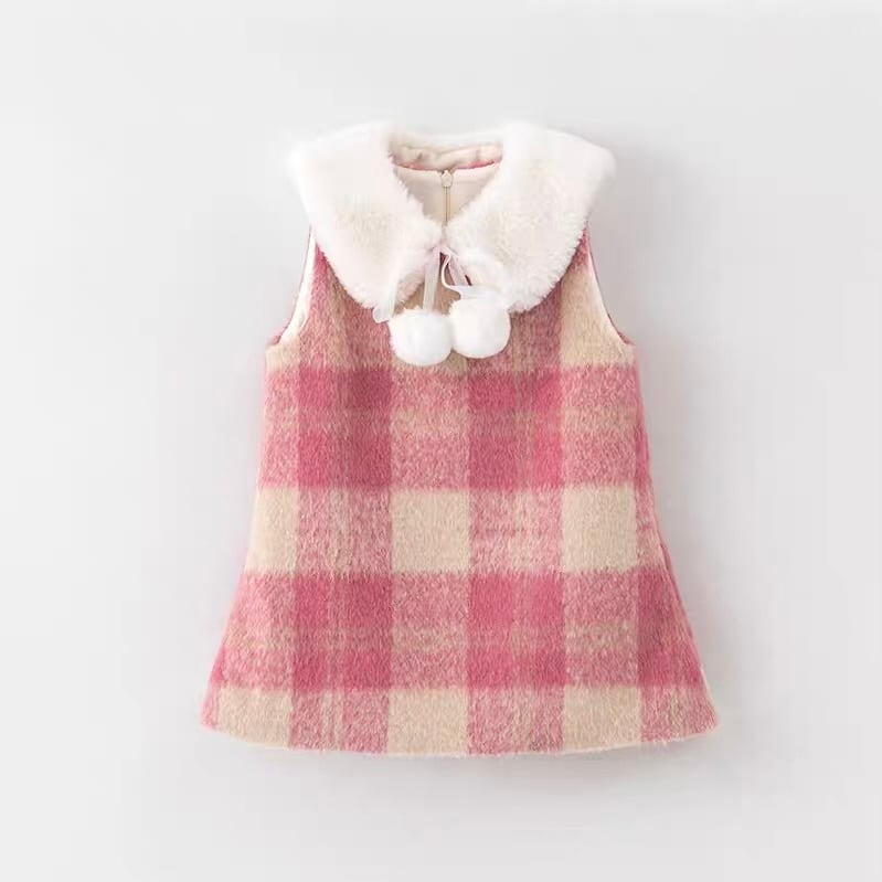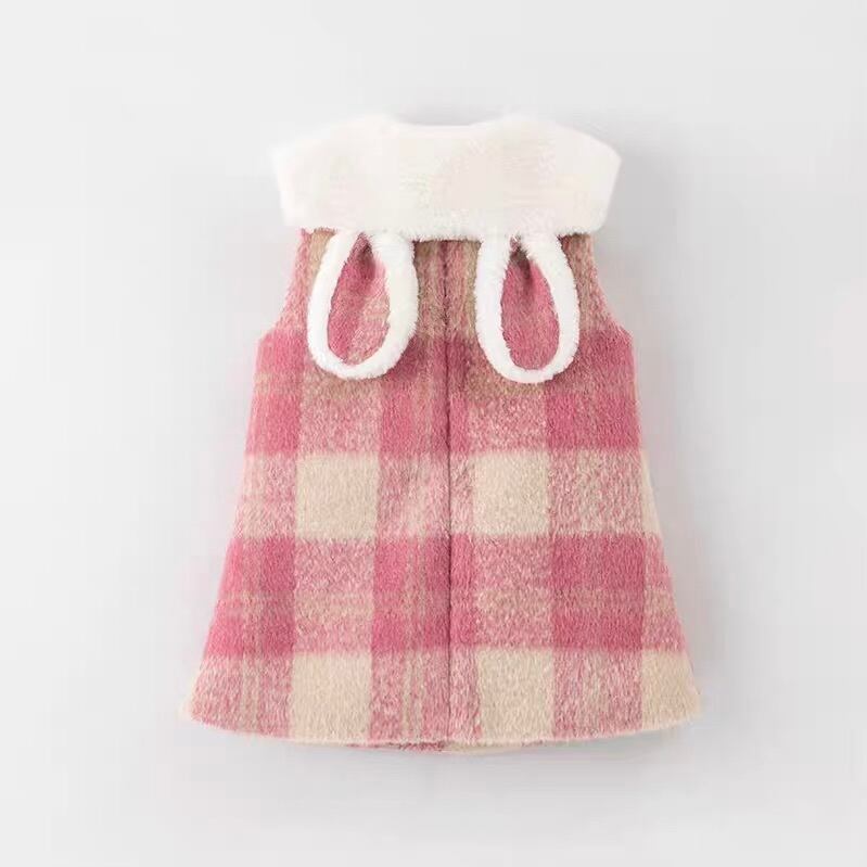 【90-130cm】うさ耳取り外し可能襟付きチェック柄ワンピース