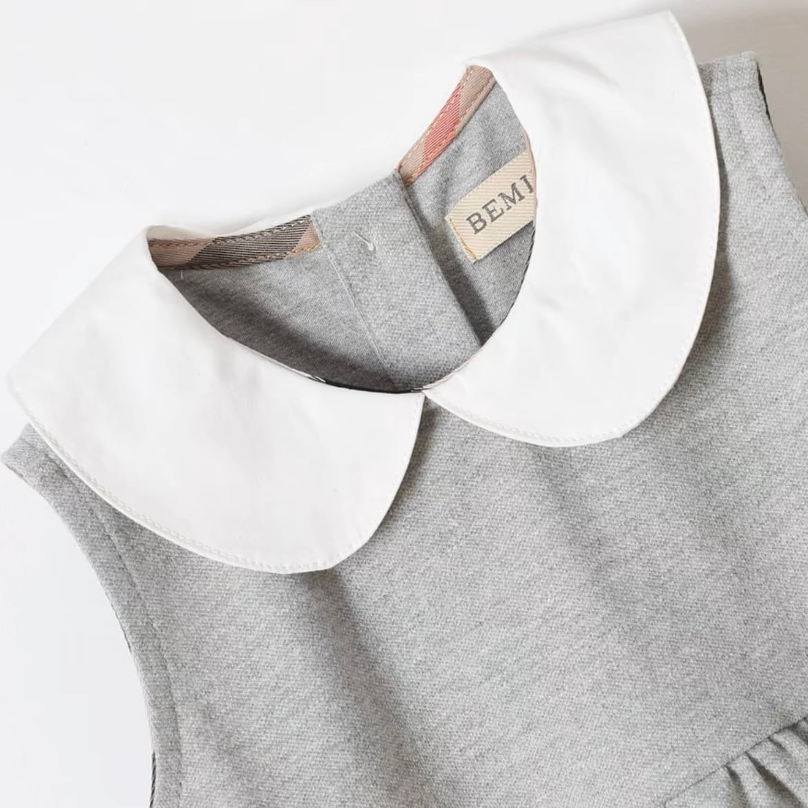 【80-130cm】全2色丸襟ラインノースリーブワンピース