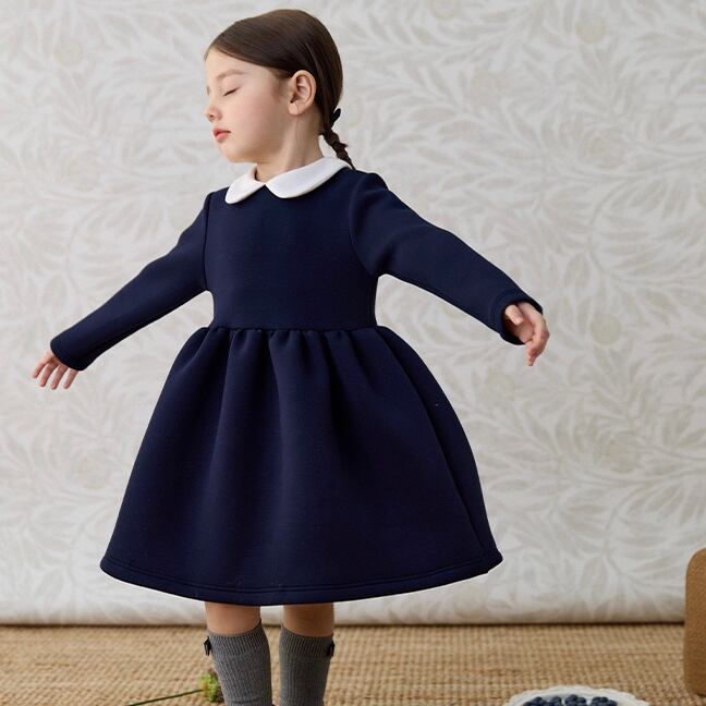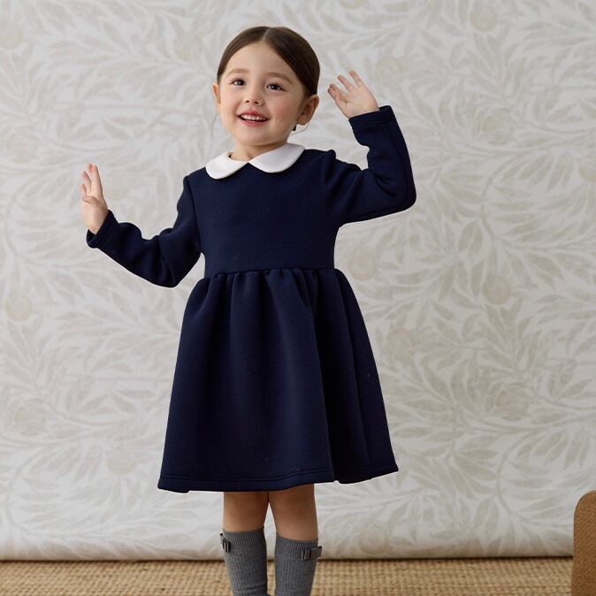 【90-140cm】丸襟フォーマル長袖ワンピース